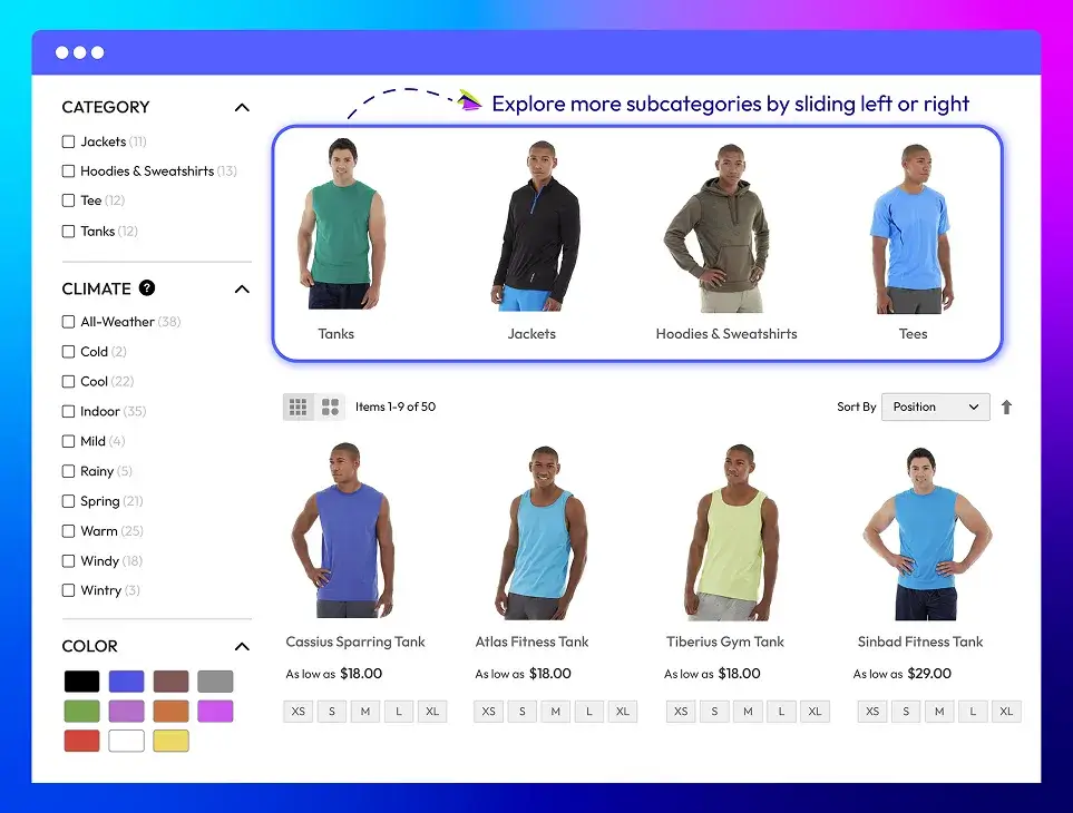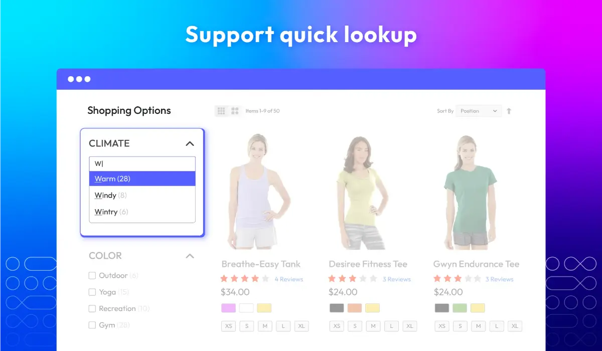 Give customers an easier way to explore your catalog with clear and flexible navigation. Instead of endless scrolling, they can quickly narrow results, focus on what matters, and reach the right products faster, creating a smoother shopping journey from start to finish.