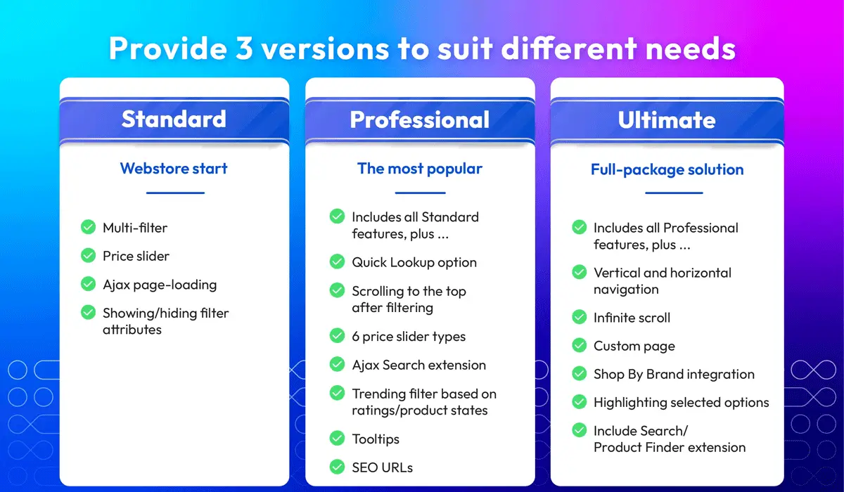 A seamless shopping journey keeps customers engaged and confident. By reducing friction and simplifying navigation, the module makes it faster, clearer, and more enjoyable for shoppers when exploring your catalog.